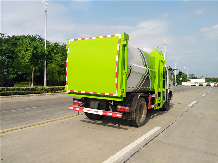 國六東風(fēng)大多利卡側(cè)裝壓縮掛桶自裝卸式垃圾車箱體為圓弧形新型加強型,箱體容積7.5 立方,壓縮方式為液壓底推推板,提升機為機拉桿式,后門液壓反向鎖死,箱體材料為Q345B錳鋼制作,材料厚度為4個厚,液壓閥為中梅或長源牌,液壓缸為海普瑞斯,齒輪泵為合肥長源牌,箱體尾部加裝污水槽,可有效防止垃圾二次污染。